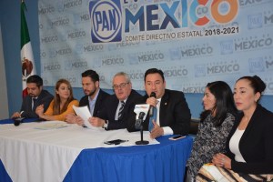 Por la derecha: Jorge Inzunza Armas, el dirigente estatal del Partido Acción Nacional (PAN), confirmó a Anuar Azar Figueroa como coordinador del Grupo Parlamentario en la LX Legislatura mexiquense, quien presentó las prioridades para su bancada en la próxima discusión del Presupuesto de Egresos del Ejecutivo Estatal.