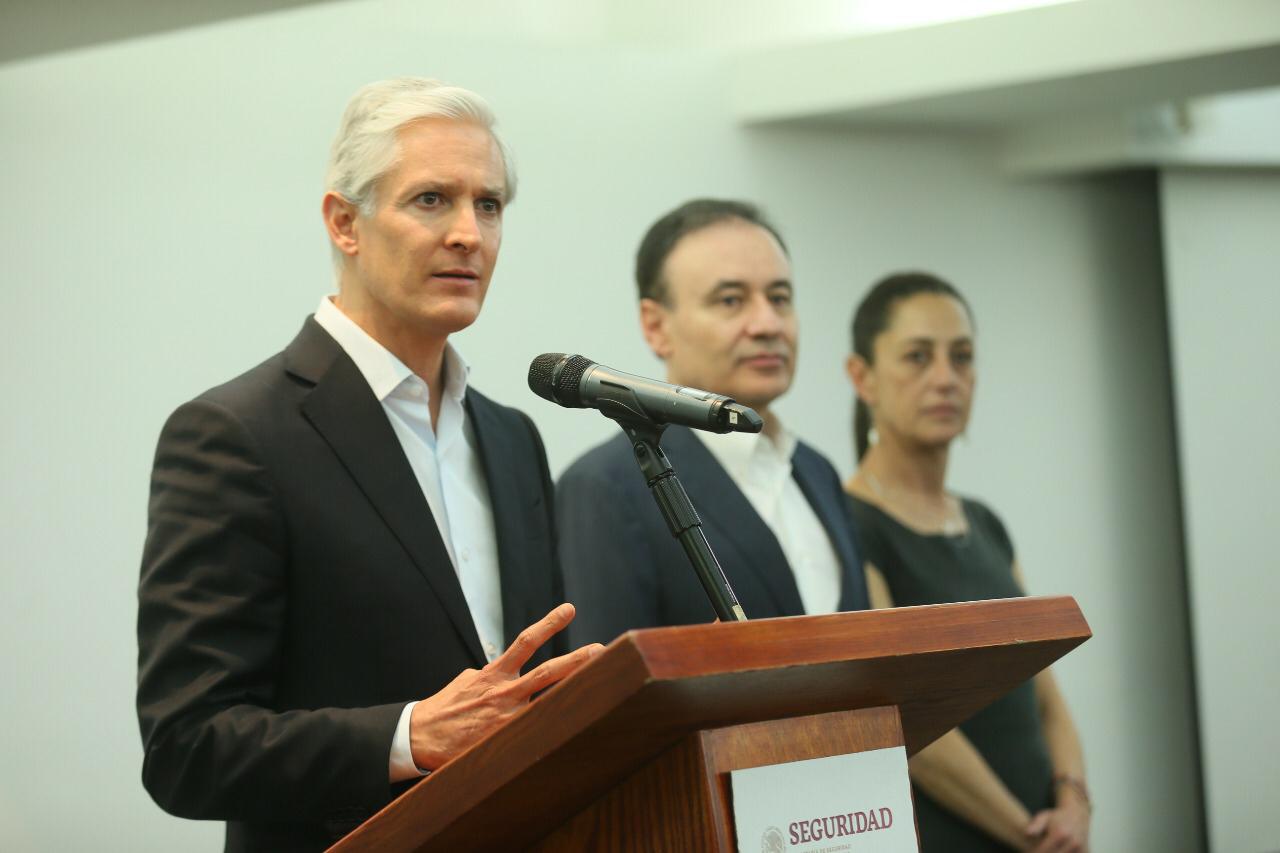Por el centro: El gobernador Alfredo del Mazo Maza se reunió con la Jefa de Gobierno de la Ciudad de México, Claudia Sheinbaum Pardo y el secretario de Seguridad y Protección Ciudadana, Alfonso Durazo Montaño, quienes anunciaron estrategias tripartitas para combatir la inseguridad y delincuencia en la Zona Metropolitana, en beneficio de los habitantes de ambas entidades.