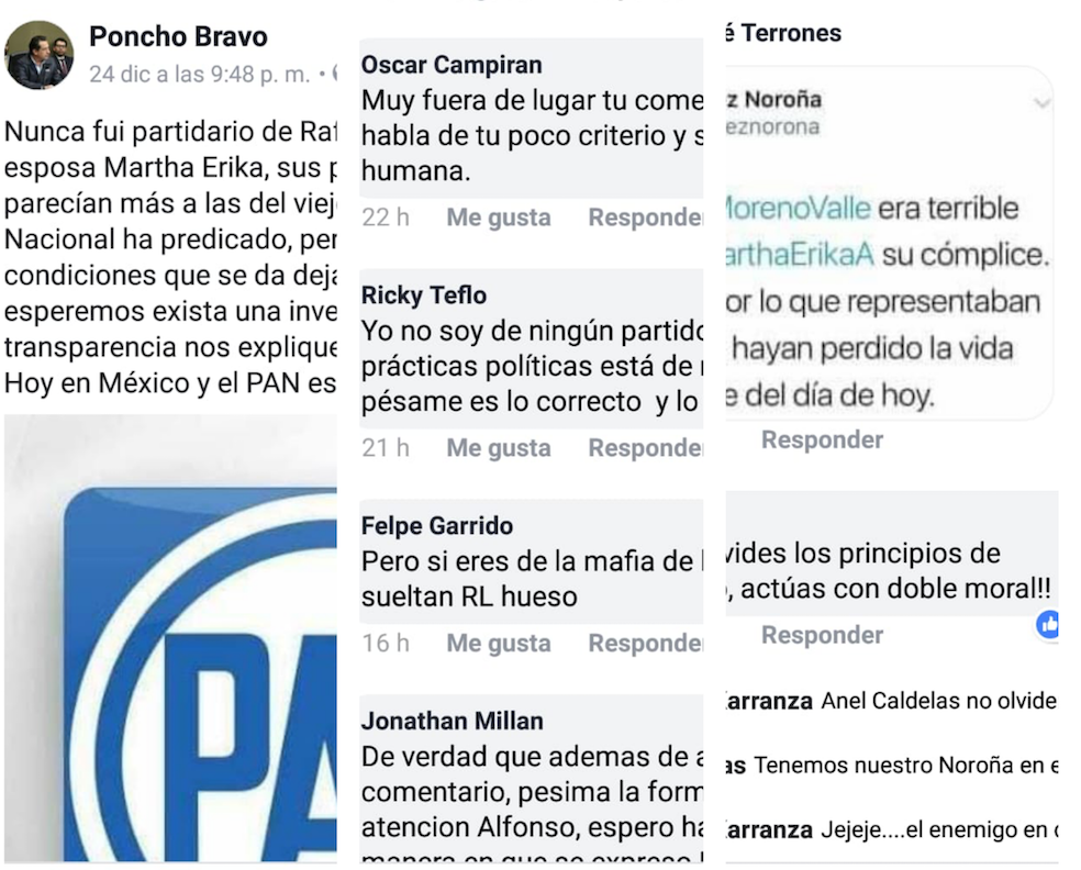 Bravo se refirió así al hecho: “Nunca fui partidario de Rafael Moreno Valle y su esposa Martha Erika, sus prácticas políticas se parecían más a las del viejo PRI, que a las que Acción Nacional ha predicado, pero su muerte en las condiciones que se da, deja mucho que pensar…..”.