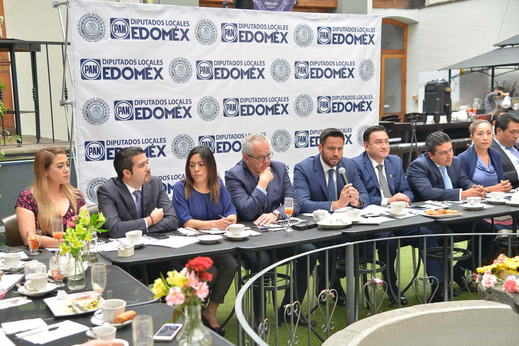 Por la derecha: Anuar Azar Figueroa presentó la agenda legislativa del Grupo Parlamentario del Partido Acción Nacional (PAN), acompañado por sus compañeros de bancada, entre los diversos asuntos que impulsarán destacó el tema de la llamada “superdelegada” federal, Delfina Gómez Álvarez, cuyo marco normativo -dijo- debe quedar claramente definido en la entidad, para evitar que desempeñe acciones fuera de la legalidad, tomando en cuenta que tiene que ver con el manejo de programas sociales.