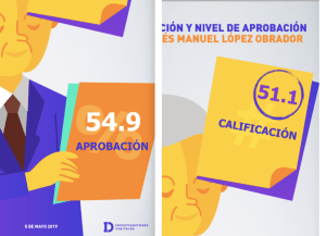 De acuerdo con “México Elige”, el presidente de la República tuvo una aprobación del 60.1 por ciento al 27 de Noviembre del 2018; de 72 por ciento, al 14 de Enero del 2019; para el 10 de Febrero, de 73 por ciento; al 10 de Marzo, de 67.4 por ciento; al 7 de Abril, del 62 por ciento y en el estudio que presentó el cinco de Mayo, se situó en 54.9 por ciento.