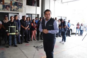 Por la derecha: El presidente municipal de Huixquilucan, Enrique Vargas del Villar, reconoció el trabajo del personal de Bomberos, Protección Civil, Organismo de Agua, Seguridad Pública, Gobierno, además de Desarrollo Agropecuario y Forestal, que durante los últimos días participaron en el combate a los incendios forestales.