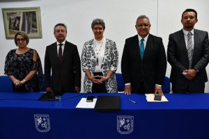 Aunado a lo anterior, el rector de la UIEM firmó un convenio de colaboración con la rectora de la Universidad Autónoma de Querétaro, Margarita Teresa de Jesús García Gasca, cuya finalidad es conjuntar esfuerzos y recursos, para fomentar la investigación entre académicos y alumnos de nivel medio superior, superior y posgrado.