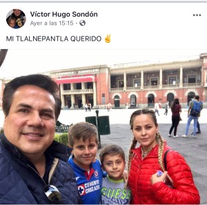 Por la derecha: Interesante la fotografía familiar que publicó en su cuenta de Facebook el ex dirigente estatal del Partido Acción Nacional (PAN) y actual representante ante el Instituto Nacional Electoral (INE), Víctor Hugo Sondón Saavedra, teniendo de fondo el ayuntamiento de Tlalnepantla.