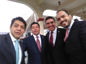 Por la izquierda: Juan Rodolfo Sánchez Gómez, el alcalde de Toluca, aseguró que el director de Seguridad Pública, Roberto Valdés García sí está certificado, aunque reconoció que el documento le fue entregado hace dos meses, por ello no se dio parte a la Contraloría del Poder legislativo.
