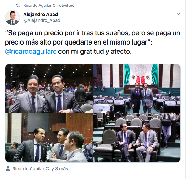 Antes de convertirse en el operador de David López fue considerado gente de Ricardo Aguilar Castillo, actual secretario de Organización del CEN, por ello llamó la atención el mensaje que acompañó a las diversas fotografías que compartió en redes sociales donde aparecen juntos en la Cámara de Diputados.