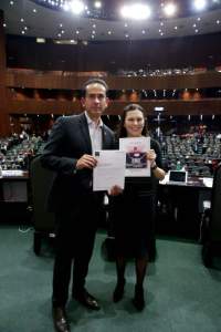 Entrega Ricardo Aguilar Primer Informe a Presidenta de Mesa Directiva en Legislatura Federal