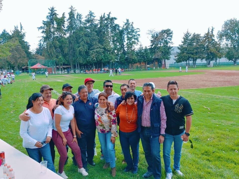Por la izquierda: El senador con licencia, Higinio Martínez Miranda, se dejó ver con un grupo de alcaldes, en un partido de beisbol, entre ellos Juan Rodolfo Sánchez Gómez, de Toluca y Gabriela Gamboa Sánchez, de Metepec-