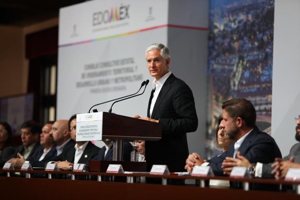 Lo anterior en el marco de la Primera Sesión Ordinaria del Consejo Consultivo Estatal de Ordenamiento Territorial y Desarrollo Urbano y Metropolitano, donde Alfredo del Mazo señaló que el Plan de Desarrollo del Estado de México es el primero a nivel nacional en alinearse con los Objetivos de Desarrollo Sostenible de la Agenda 2030, e indicó que el Consejo Consultivo, integrado por autoridades, universidades, empresarios y la sociedad civil, enfrenta el desafío de impulsar un ordenamiento hacia el futuro, al tiempo de atender fenómenos como la migración y el crecimiento poblacional, que en la entidad se incrementa en cerca de 300 mil habitantes cada año, por lo que se estima que para el 2042 más de 23 millones de personas vivirán en la entidad mexiquense.