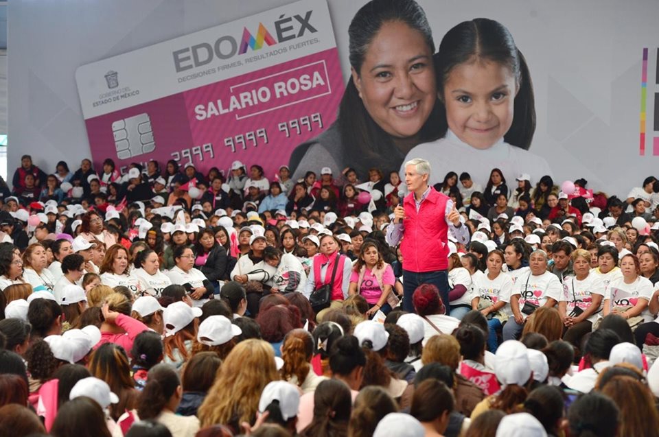 Por el centro: El gobernador Alfredo del Mazo Maza encabezó la entrega de tarjetas del programa “Salario Rosa” en Nezahualcóyotl, donde aseguró que dichos recursos que se entregan están dirigidos especialmente a las mexiquenses que más necesidades tienen en sus hogares y que, en su mayoría, no reciben algún tipo de apoyo que propicie su desarrollo y el de sus familias.