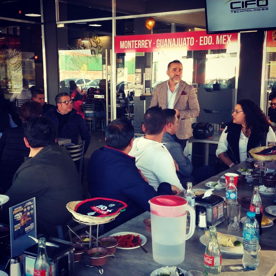 Por la derecha: Al menos 20 restauranteros y dueños de establecimientos comerciales de Metepec convocados por el empresario mexiquense, Fernando Flores Fernández, se reunieron para analizar la situación de inseguridad que se incrementó en los últimos días.