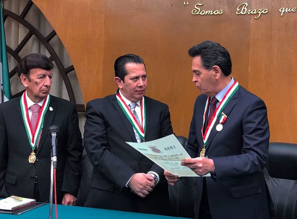 Por la izquierda2: Mario Montiel Castañeda, el secretario Técnico de la Presidencia Municipal de Toluca, fue nombrado nuevo socio numerario de la Benemérita Sociedad Mexicana de Geografía y Estadística del Estado de México, luego de presentar la tesis recipiendaria denominada “Agenda 2030 en Toluca, el compromiso es de todos”.