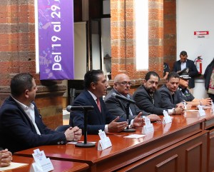 Por la izquierda: El presidente municipal de Toluca, Juan Rodolfo Sánchez Gómez, presentó el cartel del programa “Festiva 2020” que en esta edición contiene a figuras del mundo artístico de gran convocatoria que obviamente no son baratos.