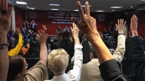Por otro lado, miembros de la Facultad de Humanidades publicaron un comunicado donde señalaron que desde el 24 de Febrero pasado, “alrededor de las 08:30 horas, cuando se realizaba la instalación de las mesas de votación para elegir consejeros universitarios de docentes y de alumnos, y de alumnos al Consejo de Gobierno, un grupo de enmascarados, armados con cadenas, irrumpió violentamente en el salón de Usos Múltiples José Blanco Regueira, cerró el acceso por dentro y mantuvo privados de su libertad al director de la Facultad, Dr. Fernando Díaz Ortega, y a miembros de la Comisión de Procesos Electorales”.