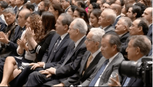 En la imagen se observa a los ex gobernadores Ignacio Pichardo Pagaza (qepd); César Camacho Quiroz, Emilio Chuayffet Chemor, Arturo Montiel Rojas y Eruviel Ávila Villegas; al centro, Ricardo Monreal Ávila, el coordinador de los senadores de MORENA y presidente de la Junta de Coordinación Política, quien además juega un papel muy relevante en el proyecto nacional de MORENA y del presidente de México, Andrés Manuel López Obrador.