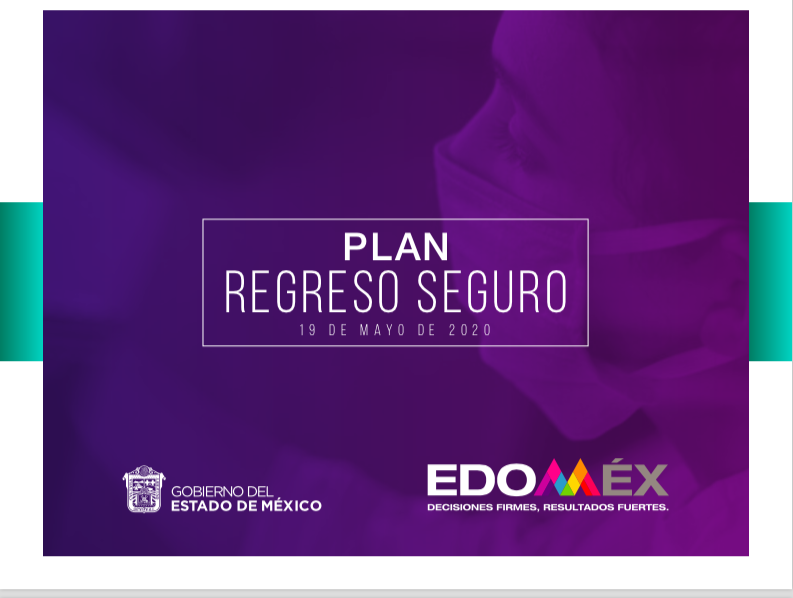 La entidad quedó dividida en cuatro regiones: zona metropolitana del valle de México; Valle de Toluca, zona Norte y Zona Sur; las actividades se retomarán de acuerdo a semáforos de control, uno para todo el estado y cuatro regionales (uno por cada región).