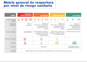Los semáforos son máximo de alerta sanitaria; alto riesgo, riesgo intermedio y bajo riesgo.