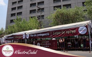 En el exterior permanece colocada una carpa de apoyo con sillas acomodadas a metro y medio para mantener la sana distancia, baños portátiles y lavamanos. También se instaló una unidad médica móvil en la que personal del DIF municipal y el IMS brindan consulta general y atención psicológica.
