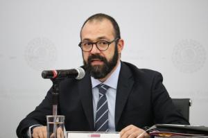 Por el centro: En entrevista con Joaquín López Dóriga, en Radio Fórmula; Rodrigo Espeleta Aladro, el secretario de Justicia y Derechos Humanos, dijo que se otorgó garantía de audiencia al Notario agresor 102, Horacio Aguilar. Por ello no está decidido quitarle la patente, más bien adelantó sanción por su conducta en agravio de su aparente pareja. Justificó que la Ley Notarial vigente contempla diversas sanciones y deben ajustarse a estas.