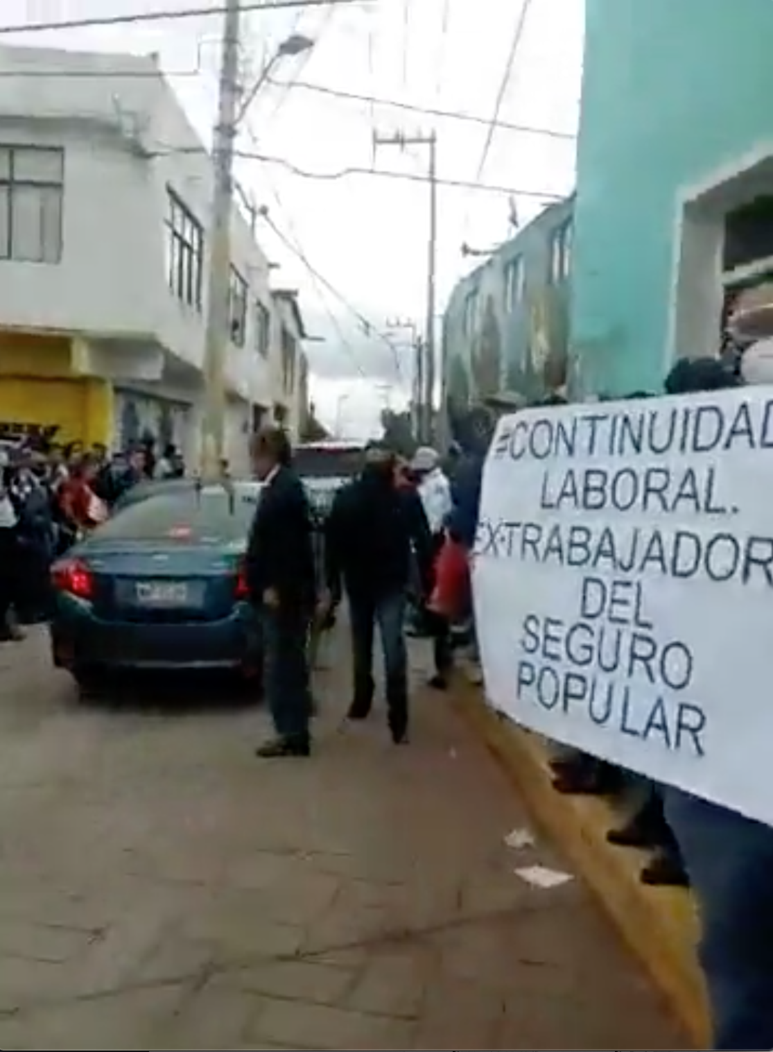 Por la izquierda: Un grupo de personas identificadas como ex trabajadores del seguro popular, con pancartas en mano, se manifestaron a la llegada del presidente Andrés Manuel López Obrador, a Texcoco, a quien expresaron la urgencia de regresar a trabajar.