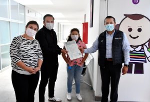 Por el centro: El director General del Sistema DIFEM, Miguel Torres Cabello, entregó el acta de nacimiento a Valentina, la menor que accedió a un hogar mexiquense como resultado de la primera adopción que se logró a partir del Tribunal Electrónico.