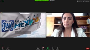 Por la derecha: El dirigente estatal del PAN, Jorge Inzunza Armas, dio a conocer la adhesión al partido, de la tercer regidora de Tlalnepantla, Krishna Karina Romero Velázquez, quien estuvo acompaña en la reunión virtual de los regidores panistas de este municipio, así como de ediles de otras demarcaciones.