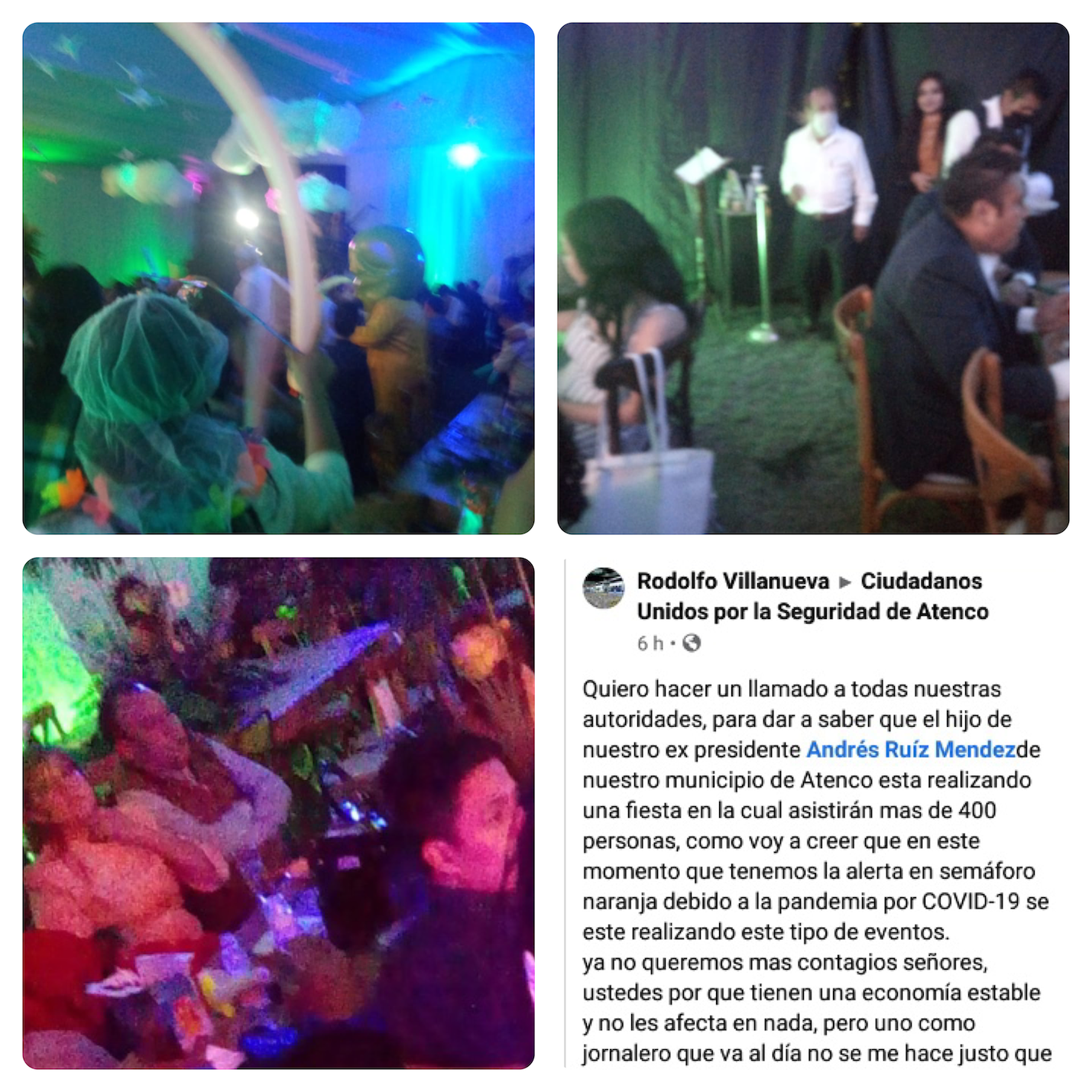 Por el centro: Habitantes del municipio de Atenco exhibieron en redes sociales al hijo del ex presidente Municipal, Andrés Ruiz Méndez, a quien se acusa de realizar una fiesta privada a la que asistieron más de 400 personas, en plena contingencia de salud por la pandemia del coronavirus.