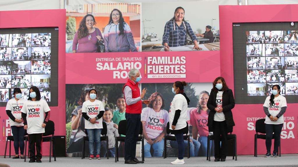 Por el centro: El gobernador Alfredo del Mazo Maza retomó la entrega de apoyos del programa “Salario Rosa”, aunque en el primer evento masivo que encabezó a distancia, afirmó que los apoyos del mismo no dejaron de otorgarse durante la contingencia, además dio a conocer que más de 270 mil mujeres reciben recursos para sus gastos y apoyar la economía familiar.