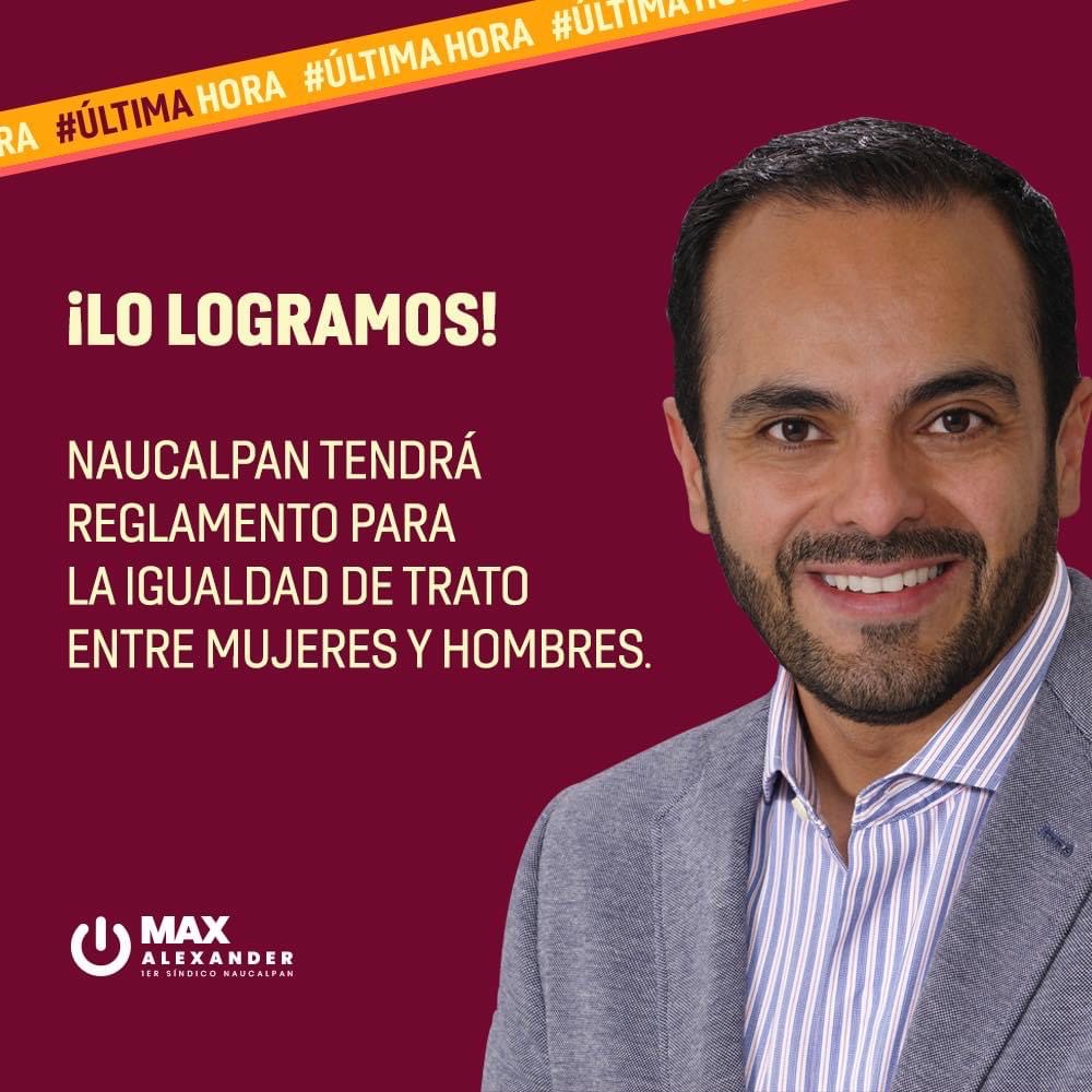 Por la izquierda: El Síndico de MORENA en Naucalpan, Maximiliano Alexánder Rábago, celebró la aprobación, en Cabildo, del Reglamento para la Igualdad de trato entre mujeres y hombres.