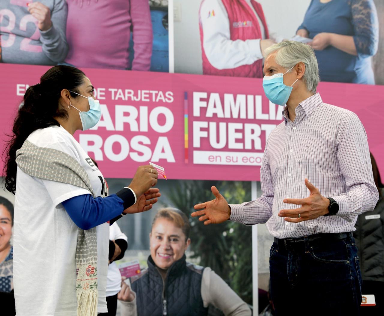Entrega Alfredo del Mazo tarjetas del Programa “Salario Rosa”