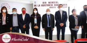 Por la izquierda: El presidente Municipal de Tlalnepantla, Raciel Pérez Cruz, entregó reconocimientos a servidores públicos que estuvieron en la primera línea de atención durante la emergencia sanitaria por COVID-19, al sector empresarial y ciudadanía que brindaron apoyo para enfrentar la pandemia, lo anterior en el marco del “Día Mundial de la Asistencia Humanitaria”.