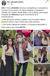 En el valle de Toluca, Mario Delgado se reunió con políticos de la región, como el alcalde de Toluca, Juan Rodolfo Sánchez Gómez; Anthony Domínguez Vargas, el presidente Municipal de Tejupilco y Maurilio Hernández González, el coordinador de los diputados locales.