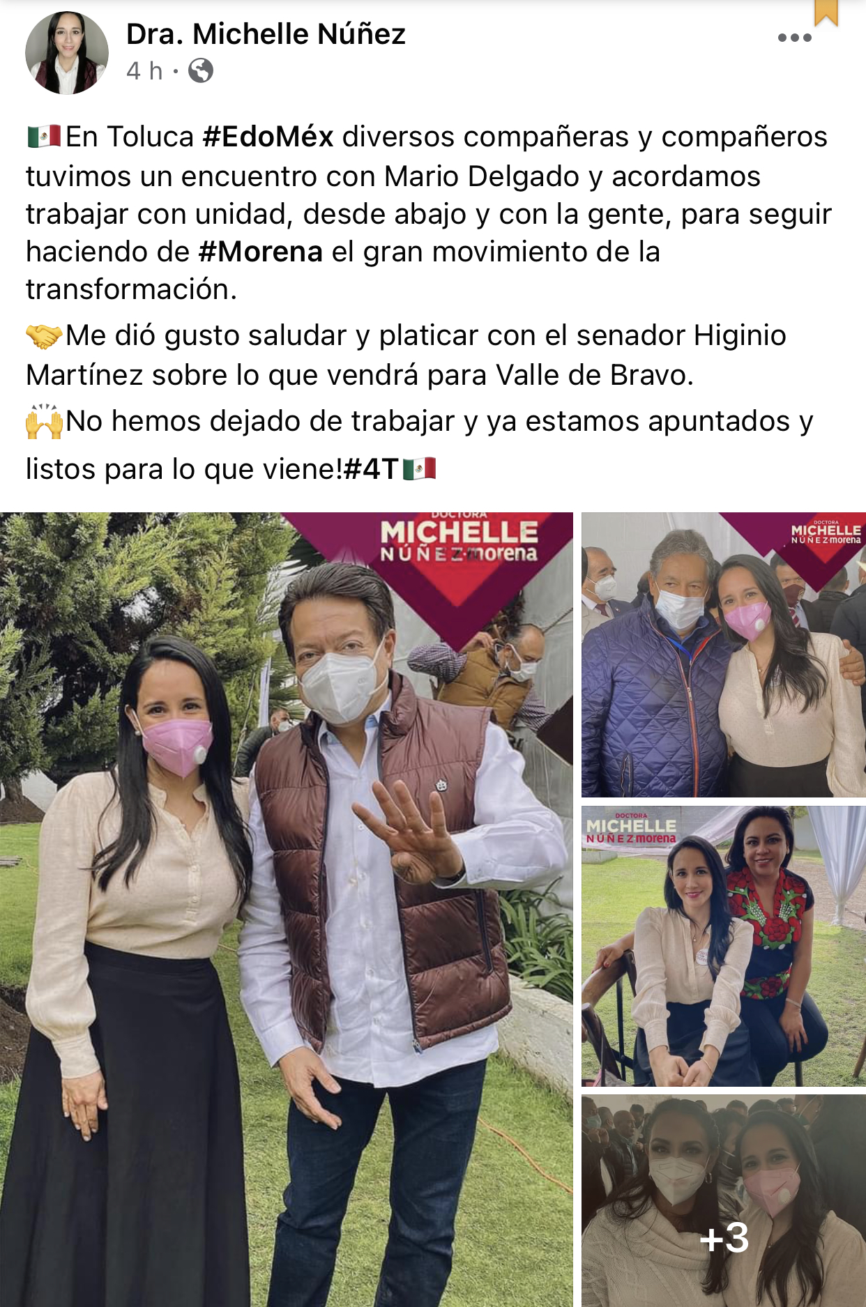 En el valle de Toluca, Mario Delgado se reunió con políticos de la región, como el alcalde de Toluca, Juan Rodolfo Sánchez Gómez; Anthony Domínguez Vargas, el presidente Municipal de Tejupilco y Maurilio Hernández González, el coordinador de los diputados locales.
