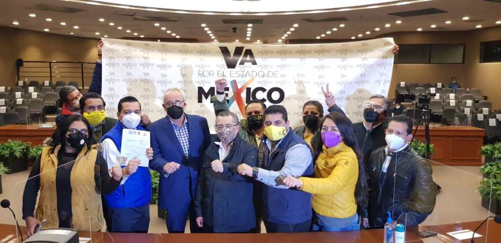 En los últimos minutos previos al fin del plazo legal, las dirigencias estatales de los partidos Acción Nacional (PAN), Revolucionario Institucional (PRI) y Revolución Democrática (PRD) registraron ante el Instituto Electoral del Estado de México (IEEM) el convenio de coalición para elegir diputados locales y presidentes Municipales, siendo el tricolor quien lleva mayoría de espacios.