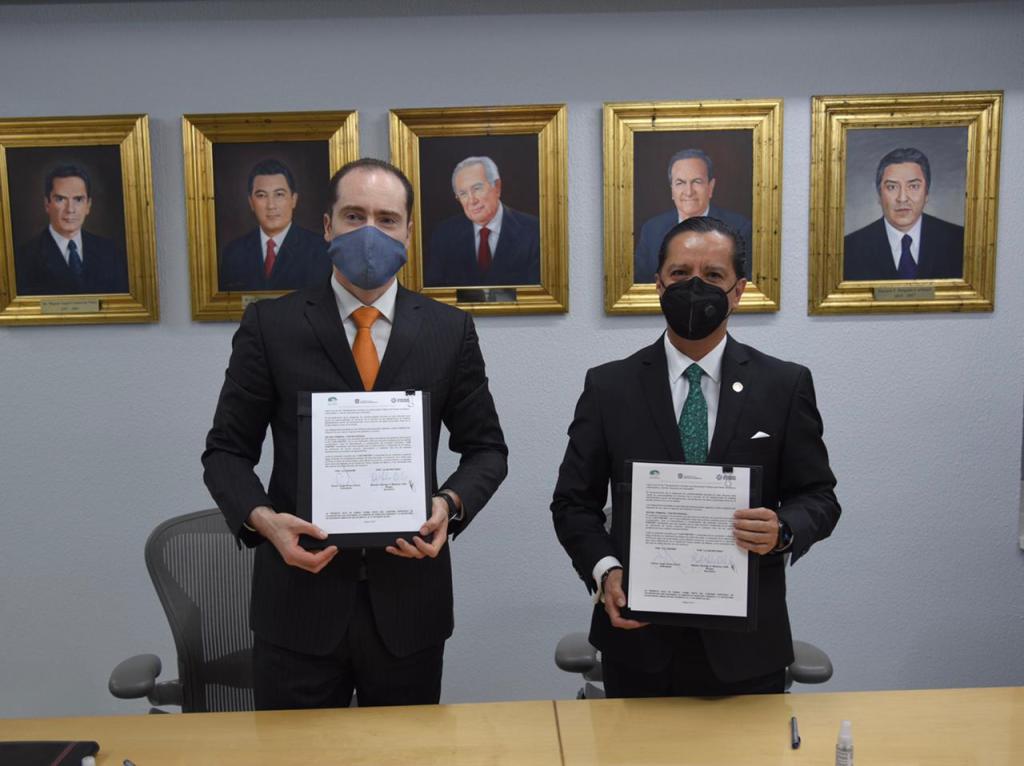 Por el centro: El ombudsman de los mexiquenses, Jorge Olvera García signó un Convenio Específico de Colaboración con la Secretaría de Seguridad a cargo de Rodrigo Martínez-Celis Wogau, con la finalidad de trabajar de manera conjunta a favor de los derechos humanos y para prevenir, atender y erradicar la violencia de género en la entidad.