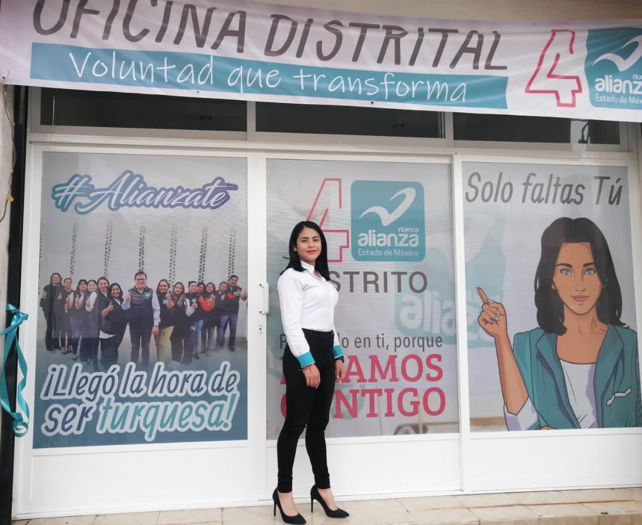 Por la izquierda2: Inaugura oficinas la Coordinadora de Nueva Alianza en el distrito IV con cabecera en Lerma, Ilse Pacheco Neri, originaria de Capulhuac.