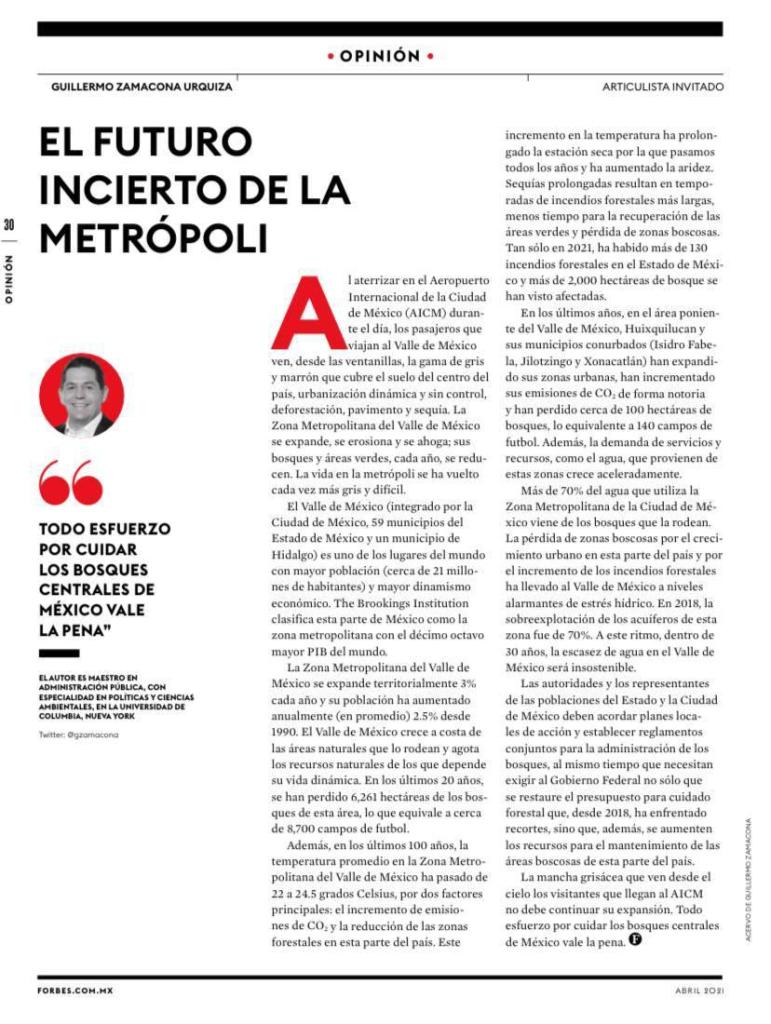 Por el centro: La revista Forbes México publicó un análisis de Guillermo Zamacona Urquiza, donde habla de la problemática ambiental que enfrenta el valle de México, misma que no ha sido contemplada en el proyecto aeroportuario de Santa Lucía, en los límites de Tecámac.