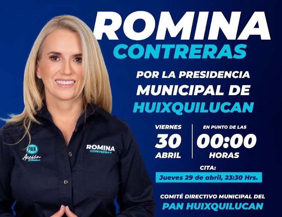 Por la derecha: La señora Romina Contreras de Vargas arrancará campaña en los primeros minutos del 30 de Abril en el Comité Municipal del PAN en Huixquilucan. Contreras es la candidata a la Presidencia Municipal, mientras que para el Distrito Local el abanderado es Diego Rosas Anaya. En todas las encuestas aventaja con una diferencia muy importante.