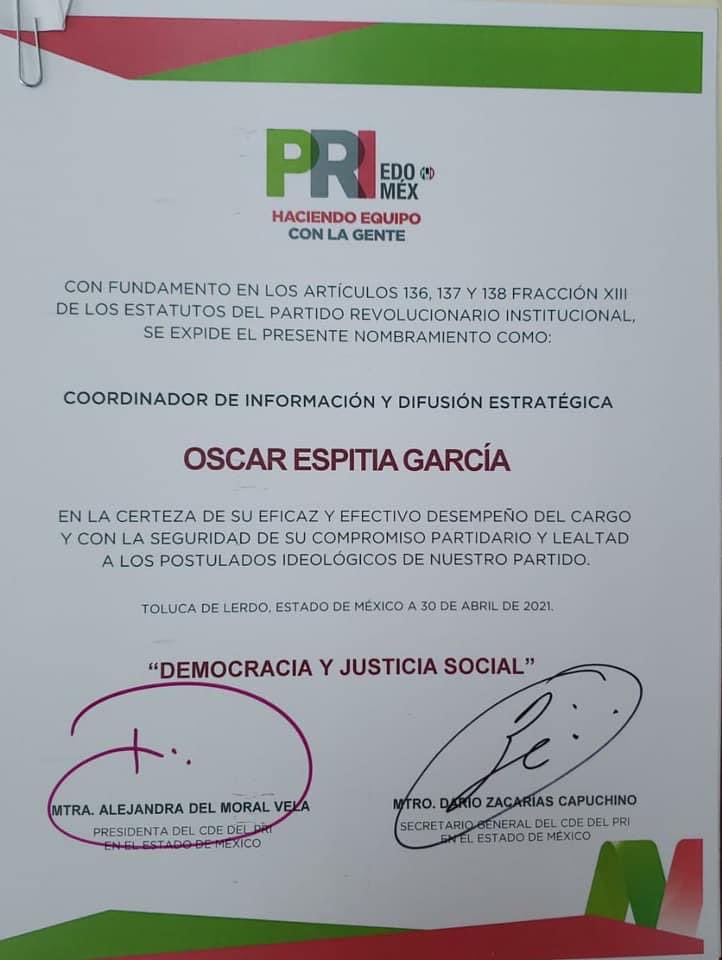 - Oscar Espitia nuevo coordinador de Difusión Estratégica del PRI