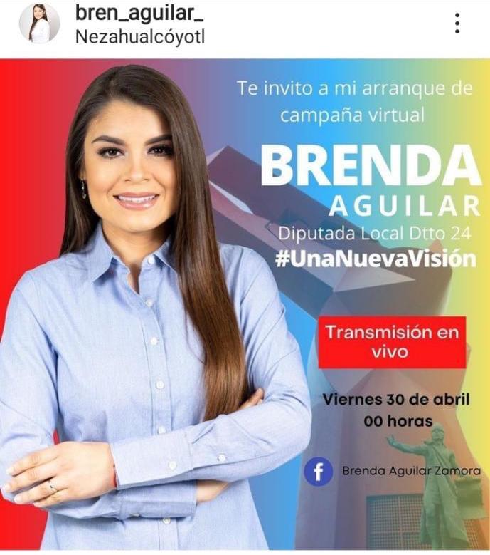 En Nezahualcóyotl, el partido Movimiento Ciudadano presentó una queja contra Brenda Aguilar Zamora, candidata a diputada, por posibles actos anticipados de campaña, porque también publicó en redes sociales su imagen de campaña antes de que las candidaturas fueran aprobadas por el Consejo General del Instituto Electoral del Estado de México.