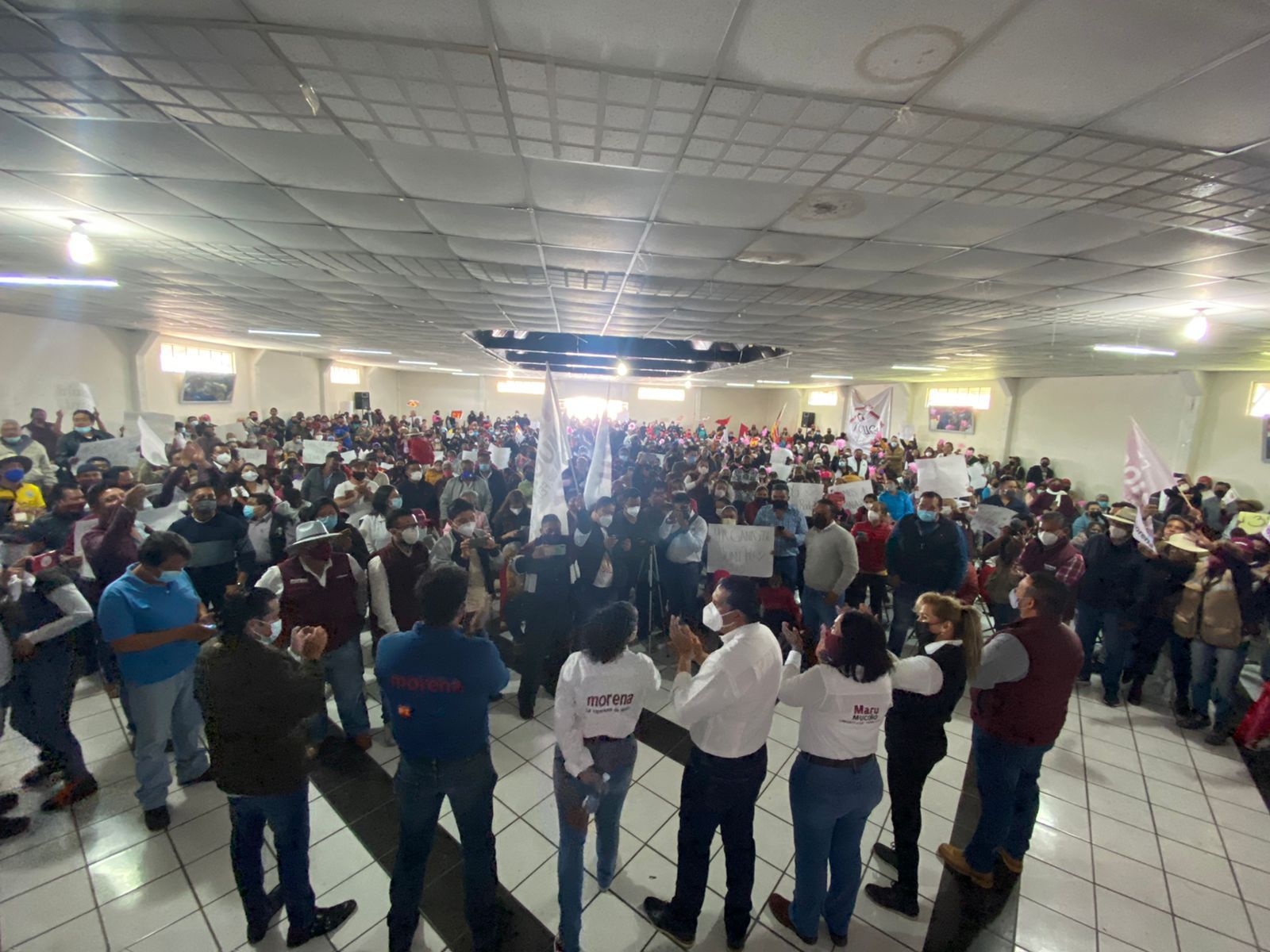 En otro acto, en San Felipe Tlalmimilolpan, se observó a más gente de la considerada, por las medidas sanitarias, ya que incluso se quedaron simpatizantes afuera del lugar donde se llevó a cabo.