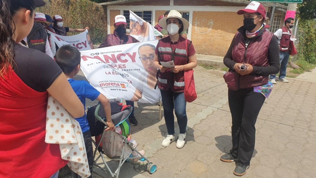 Por la izquierda2: Aun cuando encabeza la lista de candidatos a diputados locales de representación proporcional; Karina Labastida Sotelo se ha dejado ver en diferentes puntos del estado de México haciendo campaña en favor de los abanderados de la coalición MORENA-PT-PANAL.