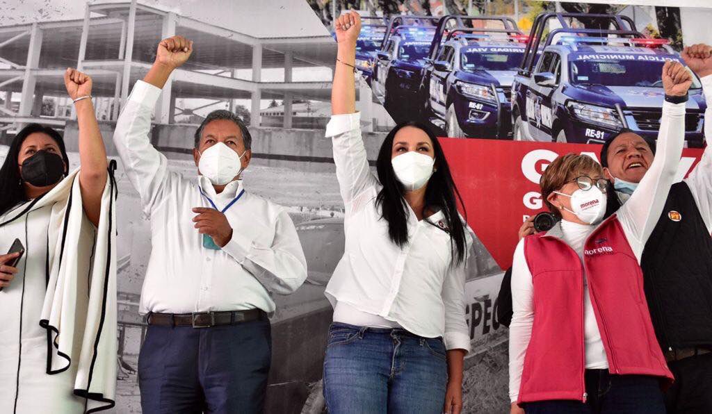 Por la izquierda2: Minutos antes de que recibiera un golpe mediático en medios informativos; Gabriela Gamboa Sánchez, la candidata de la coalición “Juntos Haremos Historia” (MORENA-PT-PANAL) a la Presidencia Municipal de Metepec, estuvo en un acto de campaña con el abanderado a legislador federal, Oscar González Yáñez, quien desde hace varios días inició actividades en calle.