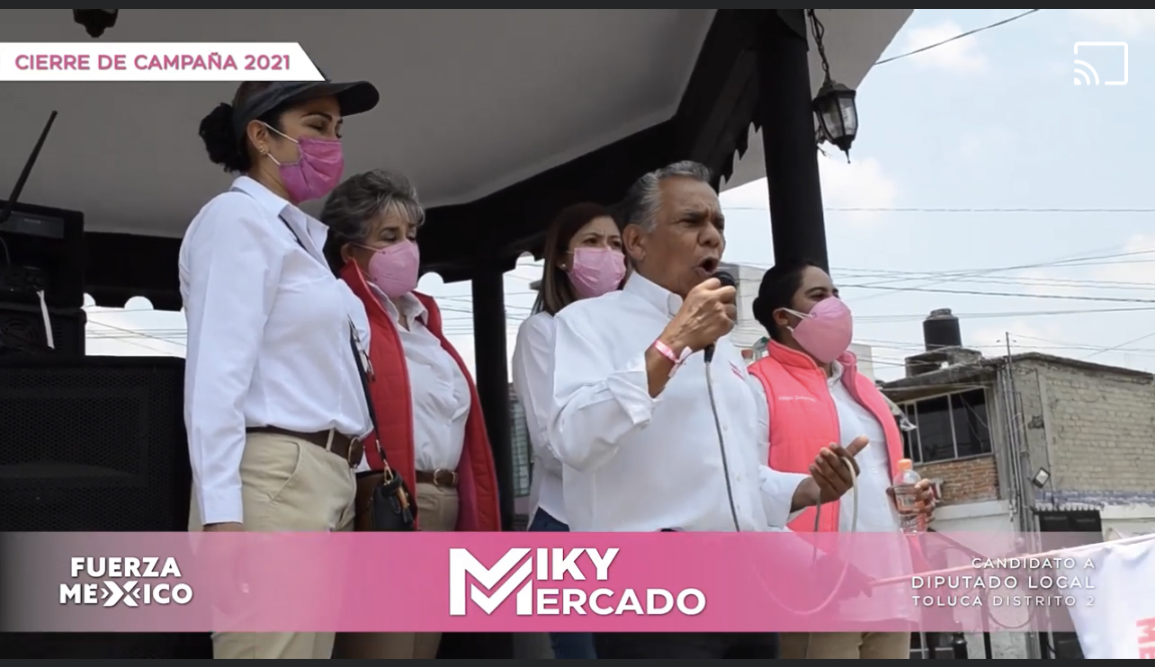 Por la izquierda: Miguel Mercado Espinoza cerró con ánimo y confianza su campaña como candidato de Fuerza por México a diputado local en el distrito 02 de Toluca.