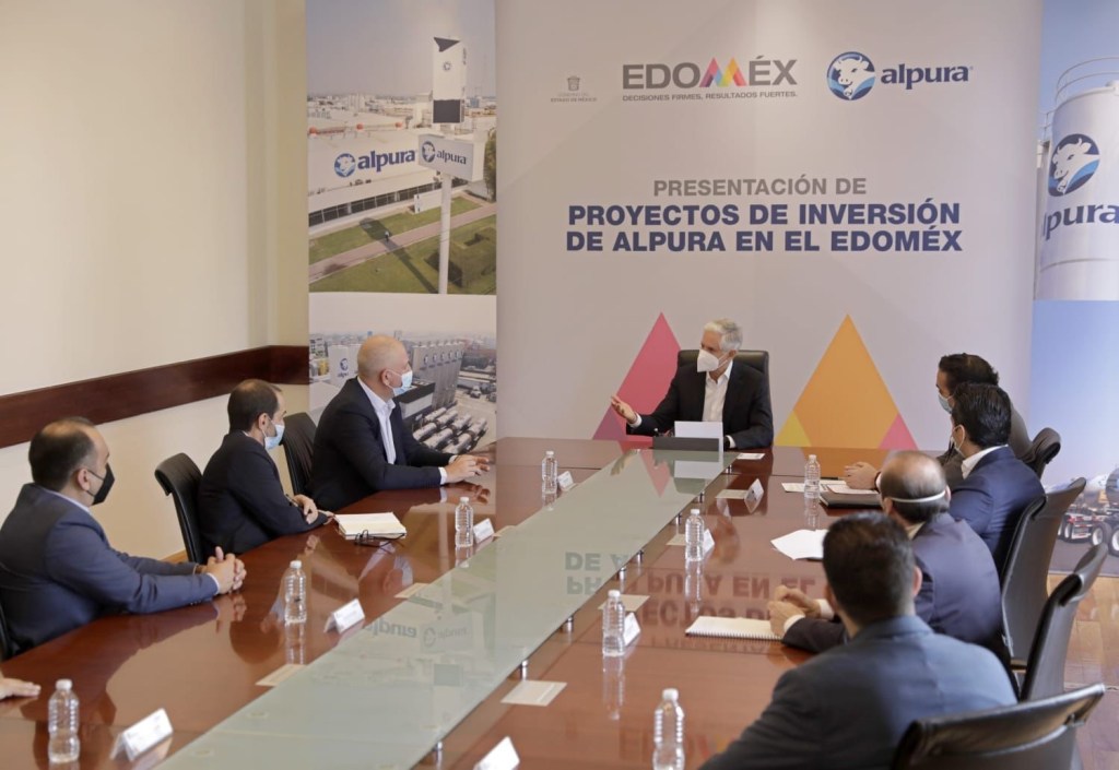 El Director General de Alpura, François Bouyra Lacombe, encabezó la comitiva de los directivos que asistieron a la reunión, quienes explicaron al mandatario estatal los alcances de los dos proyectos que la empresa desarrolla en territorio mexiquense: la Planta La Torre Cuautitlán, en Cuautitlán Izcalli, con una inversión de 650 millones de pesos, y un moderno Macrocedis (Macro Centro de Distribución), en Tepotzotlán, en el cual se invirtieron más de 860 millones de pesos.