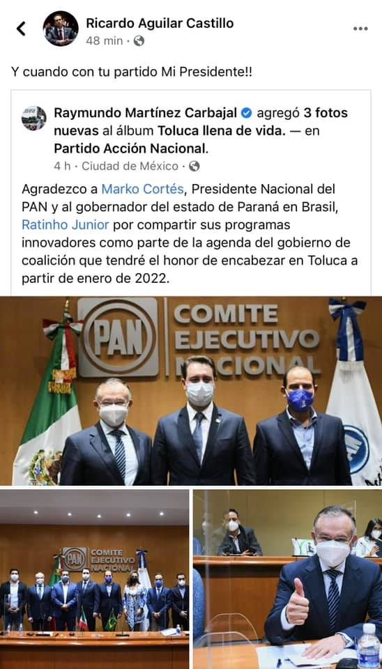 Raymundo Martínez compartió las fotografías en sus redes sociales e informó sobre la reunión, mas tarde reaccionó el secretario de Organización del Comité Ejecutivo Nacional (CEN), Ricardo Aguilar Castillo.