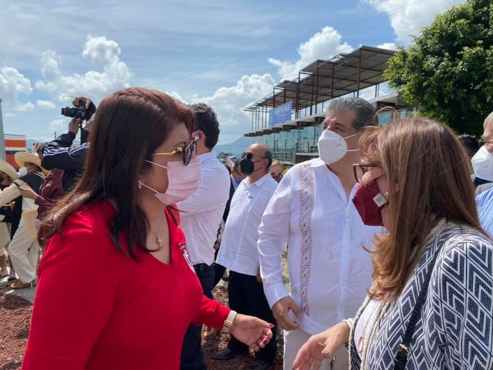 Por la izquierda: La presidenta Municipal de Tecámac, Mariela Gutiérrez Escalante, acudió a la conmemoración del CLX Aniversario de Huachinango, Puebla.
