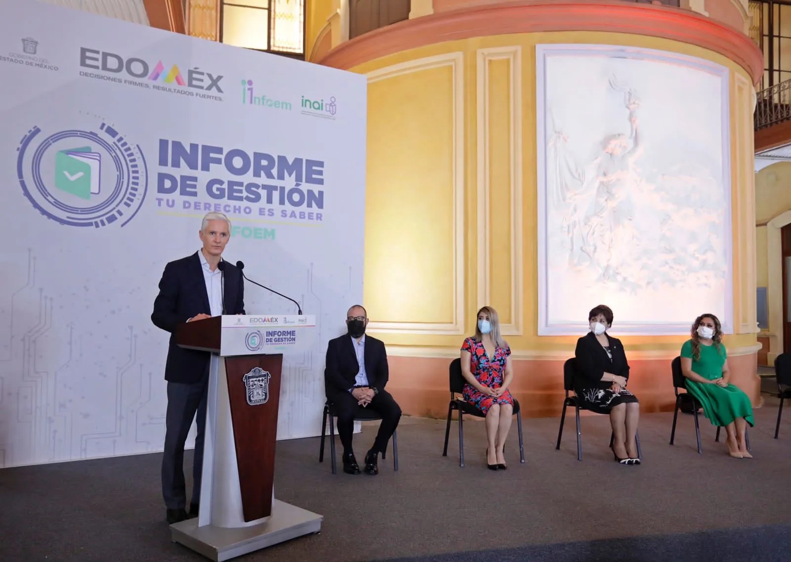 Por el centro: El Gobernador Alfredo del Mazo Maza acudió el informe de gestión del Instituto de Transparencia, Acceso a la Información Pública y Protección de Datos Personales del Estado de México y Municipios (INFOEM), cuyos comisionados serán electos en próximas semanas porque está feneciendo el de los actuales.