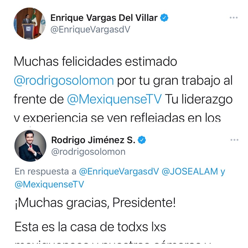 Jiménez Solomón respondió: “Muchas gracias, Presidente. Esta es la casa de todxs lxs mexiquenses y nuestras cámaras y micrófonos siempre están abiertos a todas las voces y opiniones”.
