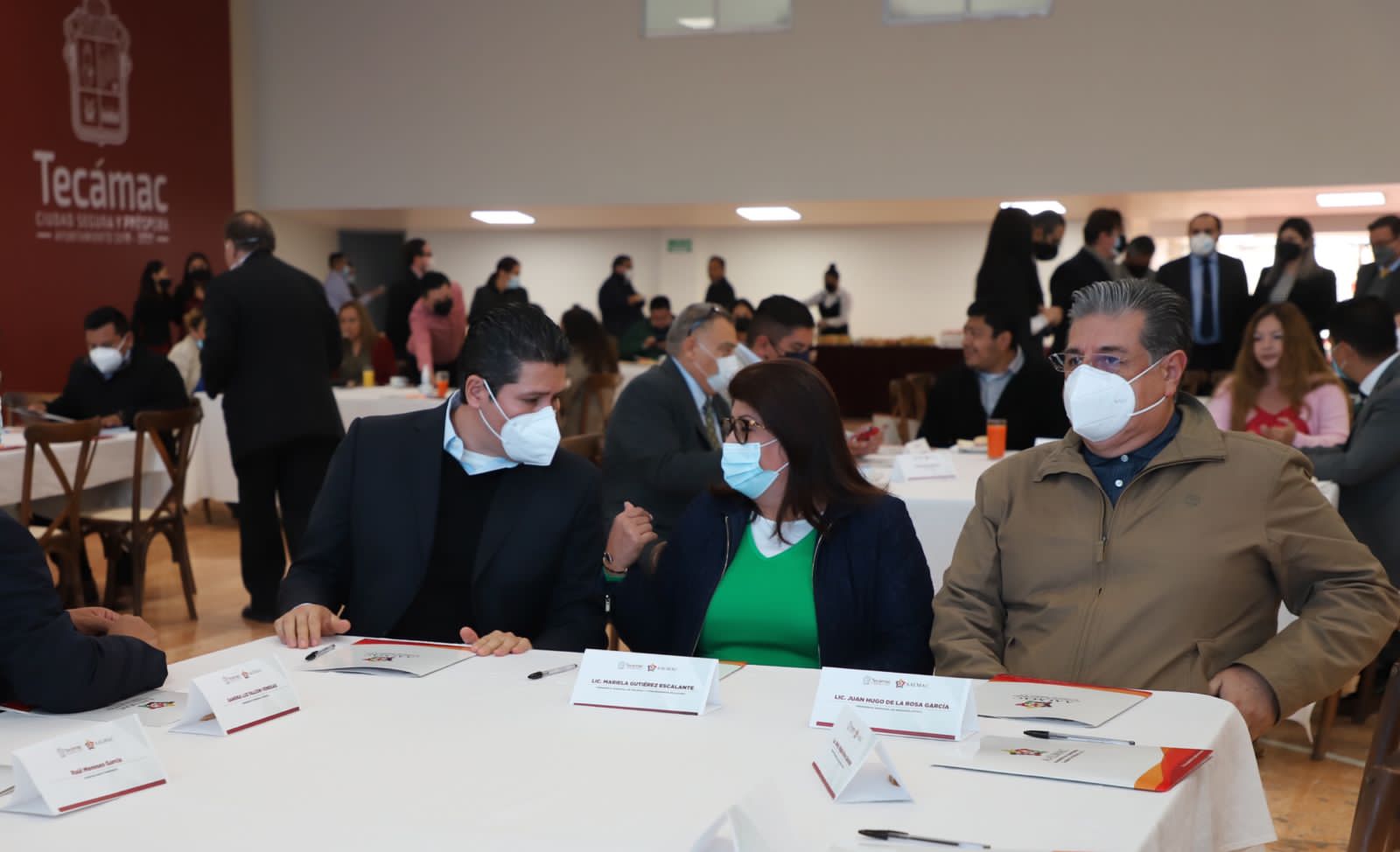 Por la izquierda: La presidenta Municipal de Tecámac, Mariela Gutiérrez Escalante, encabezó el Taller de Capacitación para Autoridades Electas de diversos municipios del país, como vicepresidenta de la Asociación de Autoridades Locales de México A.C. (AALMAC), en donde también estuvieron presentes José Guadalupe Luna Hernández, integrante del Comité de Participación Ciudadana del Sistema Anticorrupción del Estado de México; así como Ángel Pedraza López, Secretario Adjunto del Sistema Nacional de Seguridad Pública del Gobierno de México.